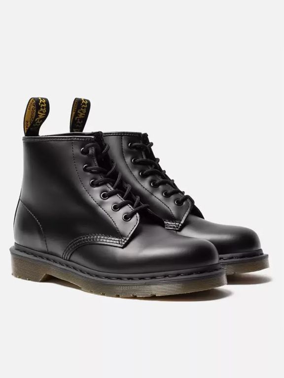 Dr Martens 101 являются классическим вариантом ботинок знаменитого бренда, произведенных из мягкого кожаного материала с гладкой окантовкой. Основание изделие выполнено с применением технологии Goodyear Welt, поэтому по краю подошвы можно наблюдать фирменный рант. Этот силуэт можно сочетать с любыми вещами.